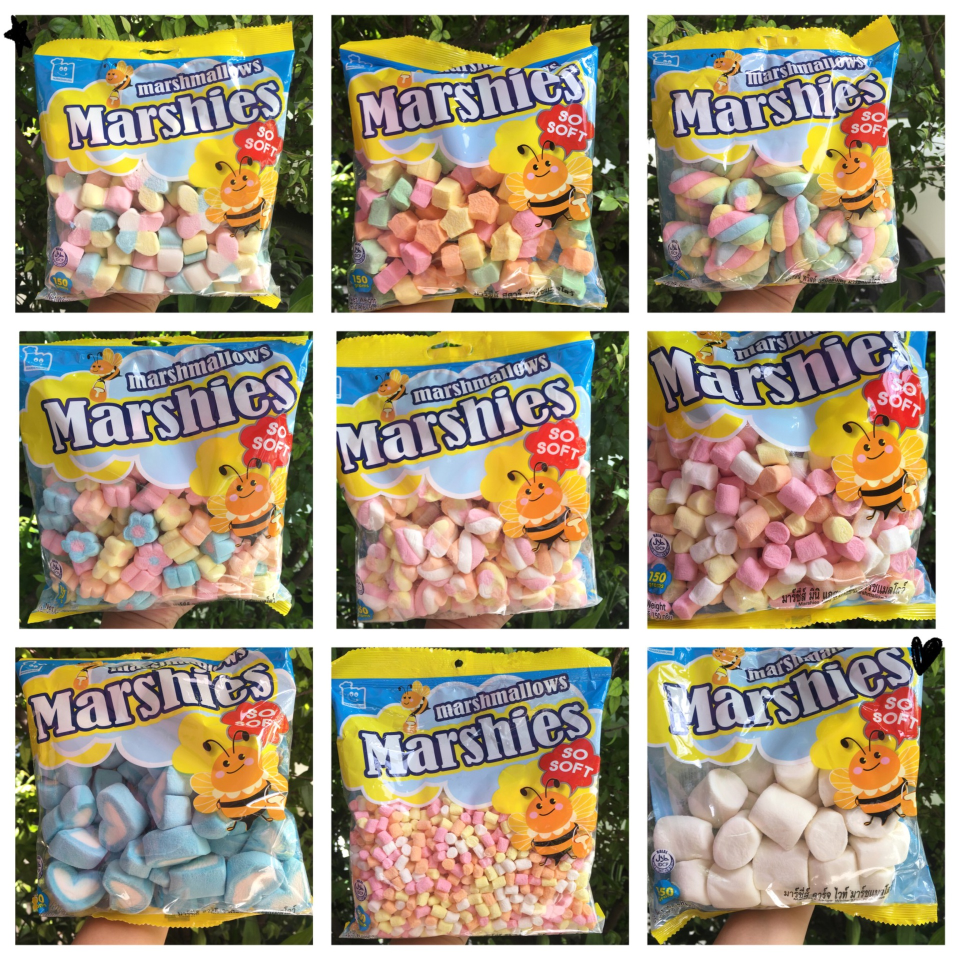 | หน่วยนับ | มาร์ซี่ส์ฮาร์ทสตรอเบอร์รี่ หรือ มาร์ชซี่ฮาร์ทวานิลลา หรือ มาร์ชซี่ส์มินิไวท์ หรือ มาร์ชซี่สตาร์ หรือ มาร์ชซี่บาร์เบอร์ช็อป หรือ มาร์ชซี่มินิทวิตต์ หรือ มาร์ชซี่ทวิสต์35มิลลิเมตร หรือ มาร์ชซี่มินิมินิแอลซอร์ท หรือ มาร์ชซี่มินิแอลซอร์ท หรือ มารืชซี่ร็อคกี้วานิลลา หรือ มาร์ชซี่ลาร์จแอลซอร์ท |