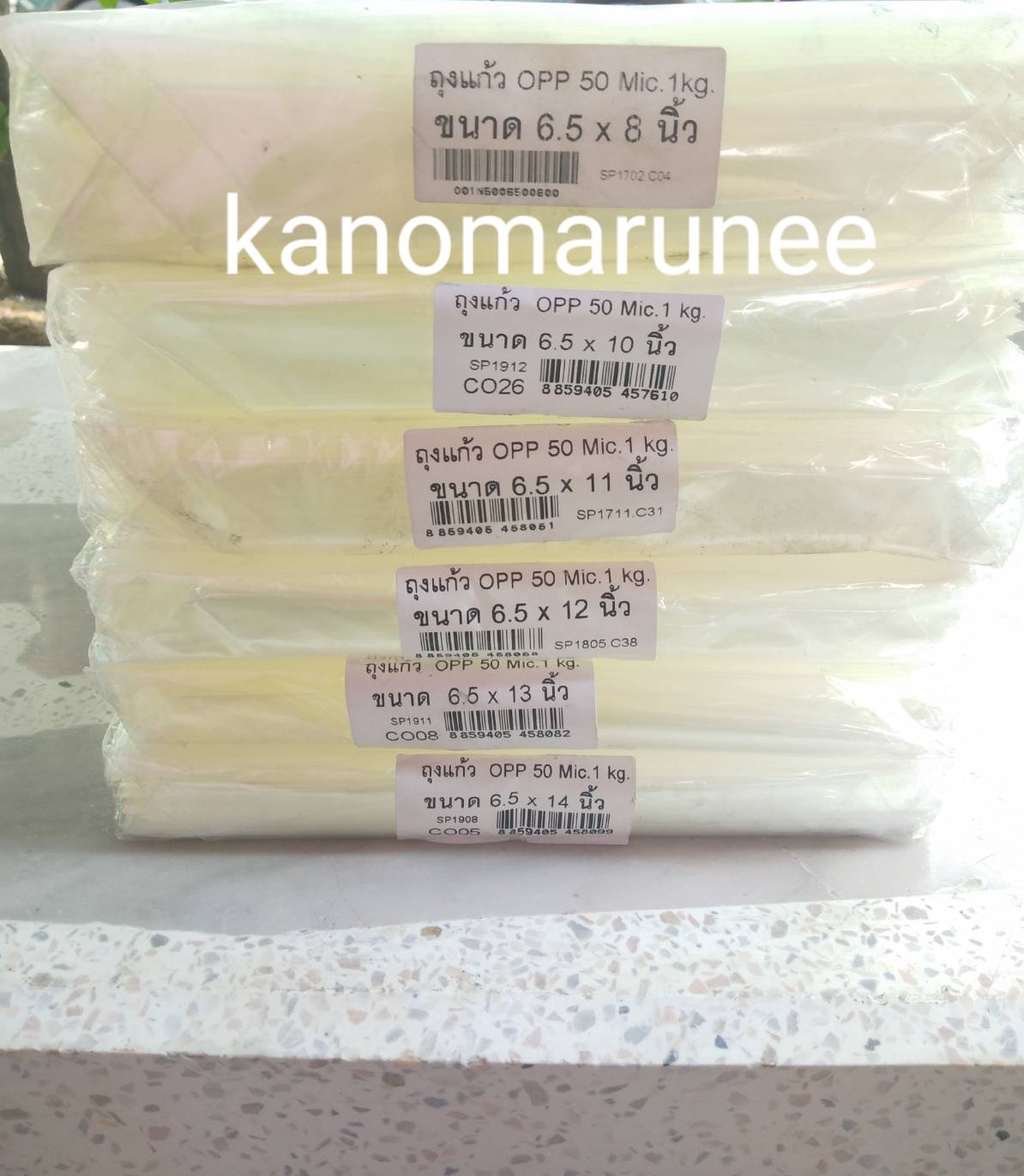 ถุงแก้ว 6.5x8,6.5x10,6.5x10.5,6.5x11,6.5x12,6.5x13,6.5x14 opp